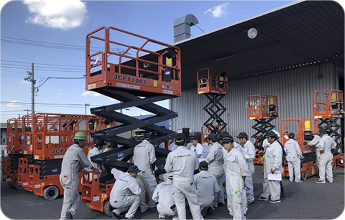 有了这样的邂逅,日建租赁于今年7月开始大批量采购公海5500贵宾会设备,首批不同规格型号的高空作业平台达数百台,也就有了近期的培训活动。